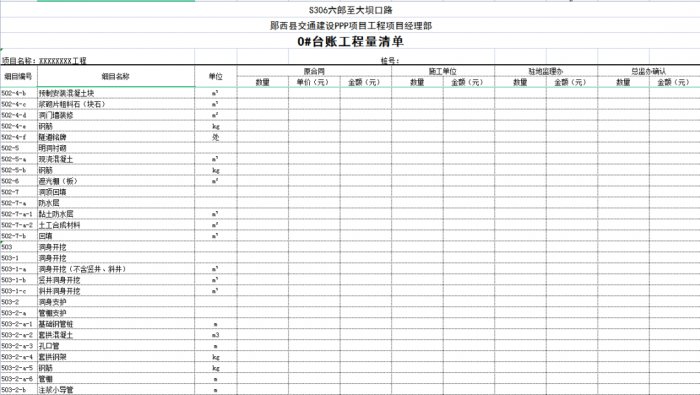 在闡述“0#”臺(tái)賬對(duì)公路工程項(xiàng)目管理的作用之前,有必要先對(duì)“0#”臺(tái)賬的含義進(jìn)行說明,目前在我國行業(yè)的相關(guān)規(guī)范中,并無“0#”臺(tái)賬的專業(yè)術(shù)語和定義,每一個(gè)項(xiàng)目都可以根據(jù)自身的項(xiàng)目管理特點(diǎn)對(duì)其進(jìn)行定義。所謂“0#”是根據(jù)時(shí)間的先后順序來說的,初始的臺(tái)賬叫“0#”臺(tái)賬,進(jìn)入實(shí)施階段后,根據(jù)設(shè)計(jì)變更,還可能會(huì)有“0-1#”“0-2#”“1#”等臺(tái)賬,不同項(xiàng)目各有不同。